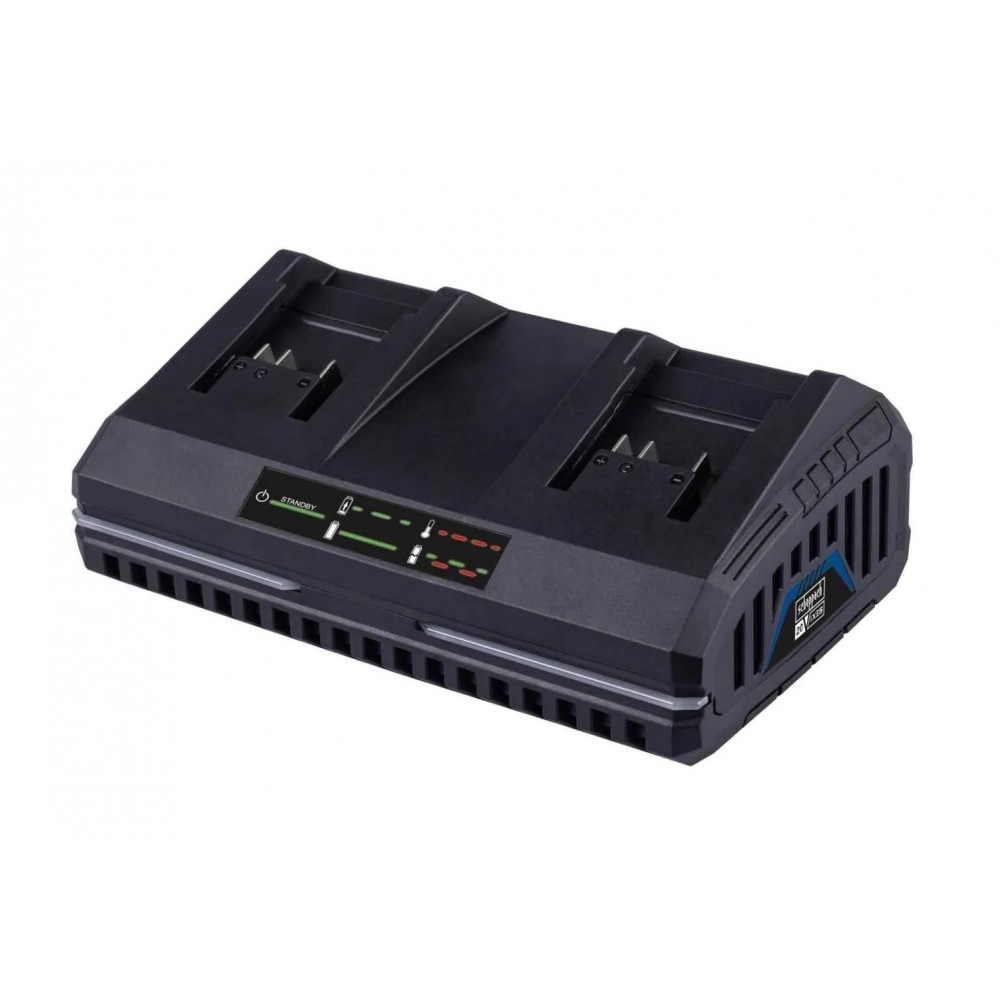 - The Scheppach Simultaneous Rapid kroviklis leidžia vartotojui krauti 2 akumuliatorius vienu metu