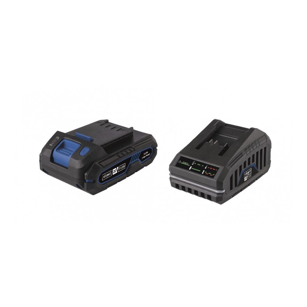 - Praktiškas rinkinys, kurį sudaro 20 V / 4,0 Ah akumuliatorius ir 2,4 A įkroviklis