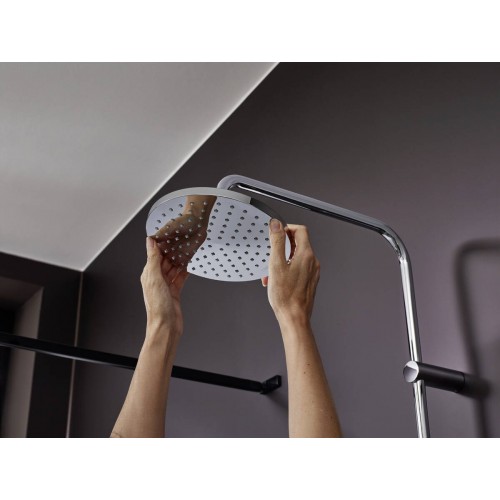 Ar yra kam patinka valymas? Naudojant „QuickClean“, „hansgrohe“ maišytuvuose ir dušuose akimirksniu dingsta kalkių nuosėdos ir nešvarumai. Tiesiog nuvalykite iš silikono pagamintus lankstus kamštelius.