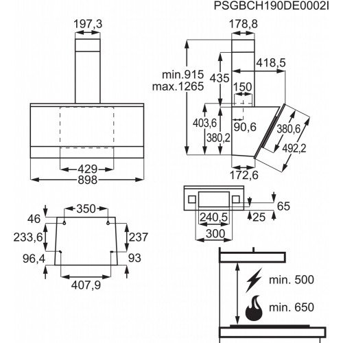 - Matmenys, (mm): 915-1265x898x418