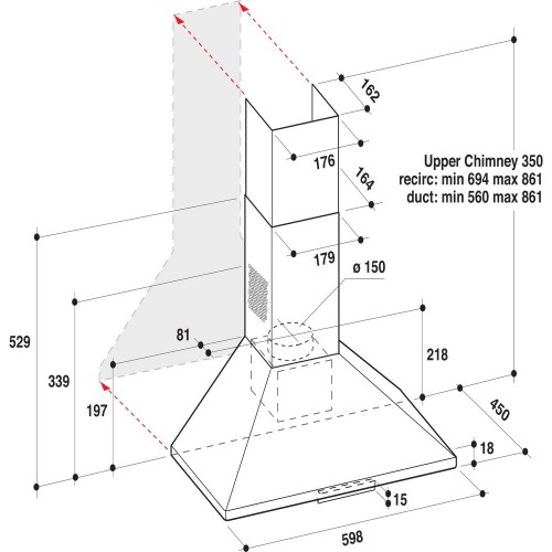 Montavimas prie sienos. Šį prie sienos montuojamą „Whirlpool“ gartraukį paprasta montuoti.