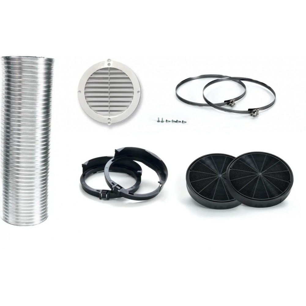 - Rinkinys susideda iš: 2 anglies filtrų, anglies filtrų paramos, lanksčios ø 150 mm ir 1500 mm ilgio žarnos, 2 gnybtų.