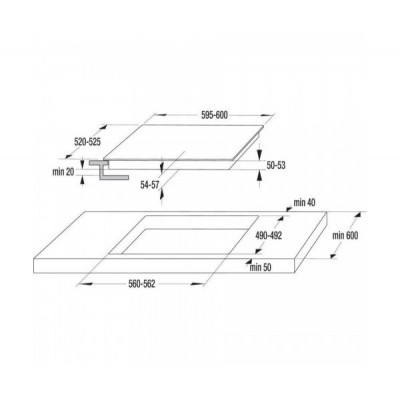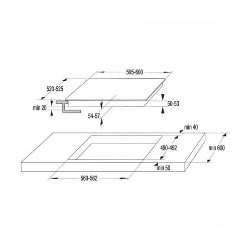 - Montavimo angos matmenys (PxAxG): 56 × 6.2 × 49 cm