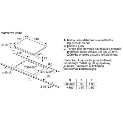- Gaminio išmatavimai (mm) 51 x 816 x 527 mm