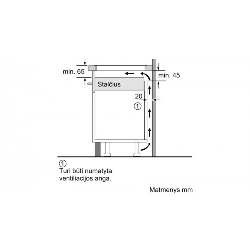 - Minimalus montavimo nišos aukštis 490 mm