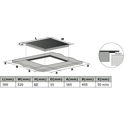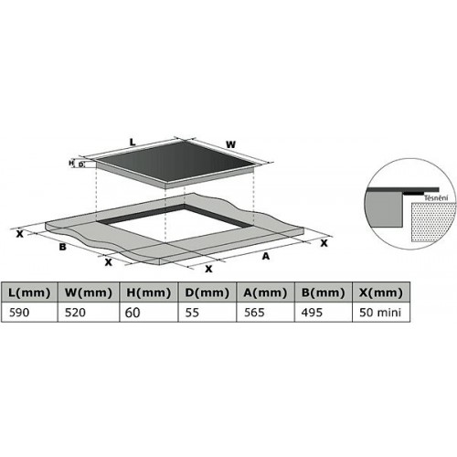 - Matmenys (A x P x G) 590 x 520 x 60 mm