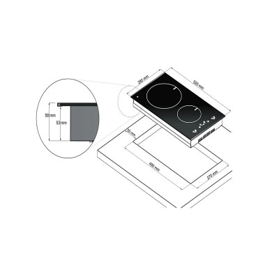 - Papildomos funkcijos: ekranas, vaikų apsauga, apsauga nuo perkaitimo, likutinės šilumos indikatorius, laikmatis, stiprintuvas, stalo reikmenų atpažinimas