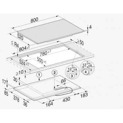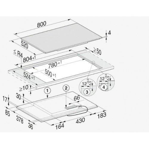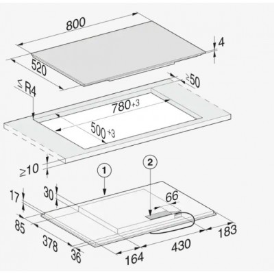 - Išpjovos matmenys mm (plotis), montuojant ant stalviršio 780