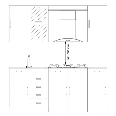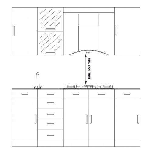 - Gartraukis kabinamas minimum 650mm atstumu nuo kaitlentės
