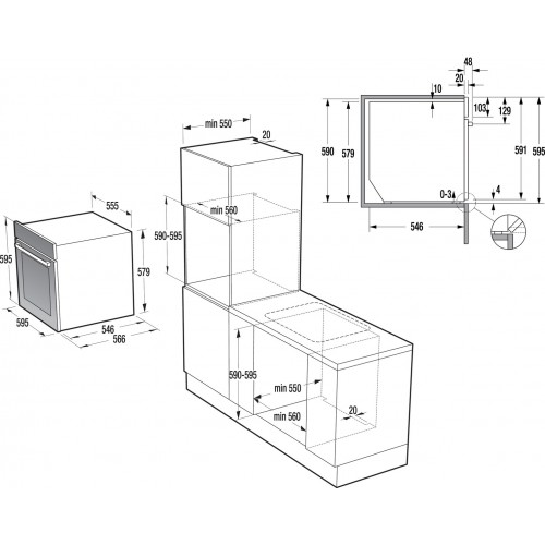 - Montavimo angos matmenys (PxAxG): 56 × 59 × 55 cm