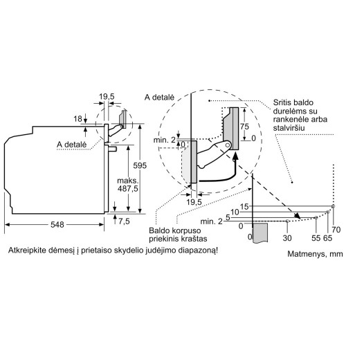 - Maksimalus montavimo nišos aukštis 595 mm