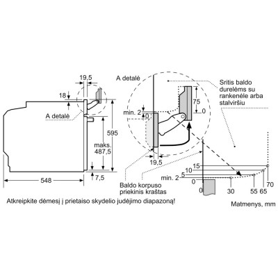 - Mažiausias montavimo angos plotis 560 mm