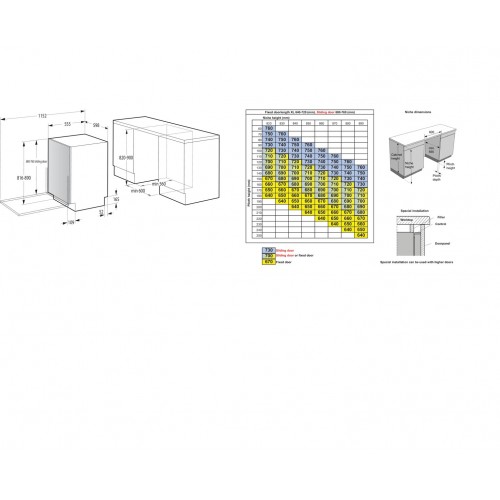 - Mažiausias montavimo nišos aukštis 820 mm