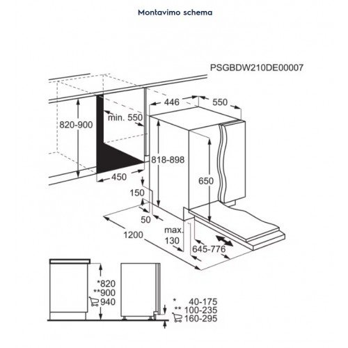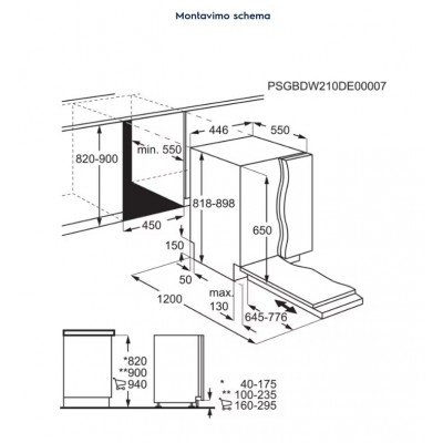 - Montavimo matmenys A x P x G, (mm): 818 x 450 x 550