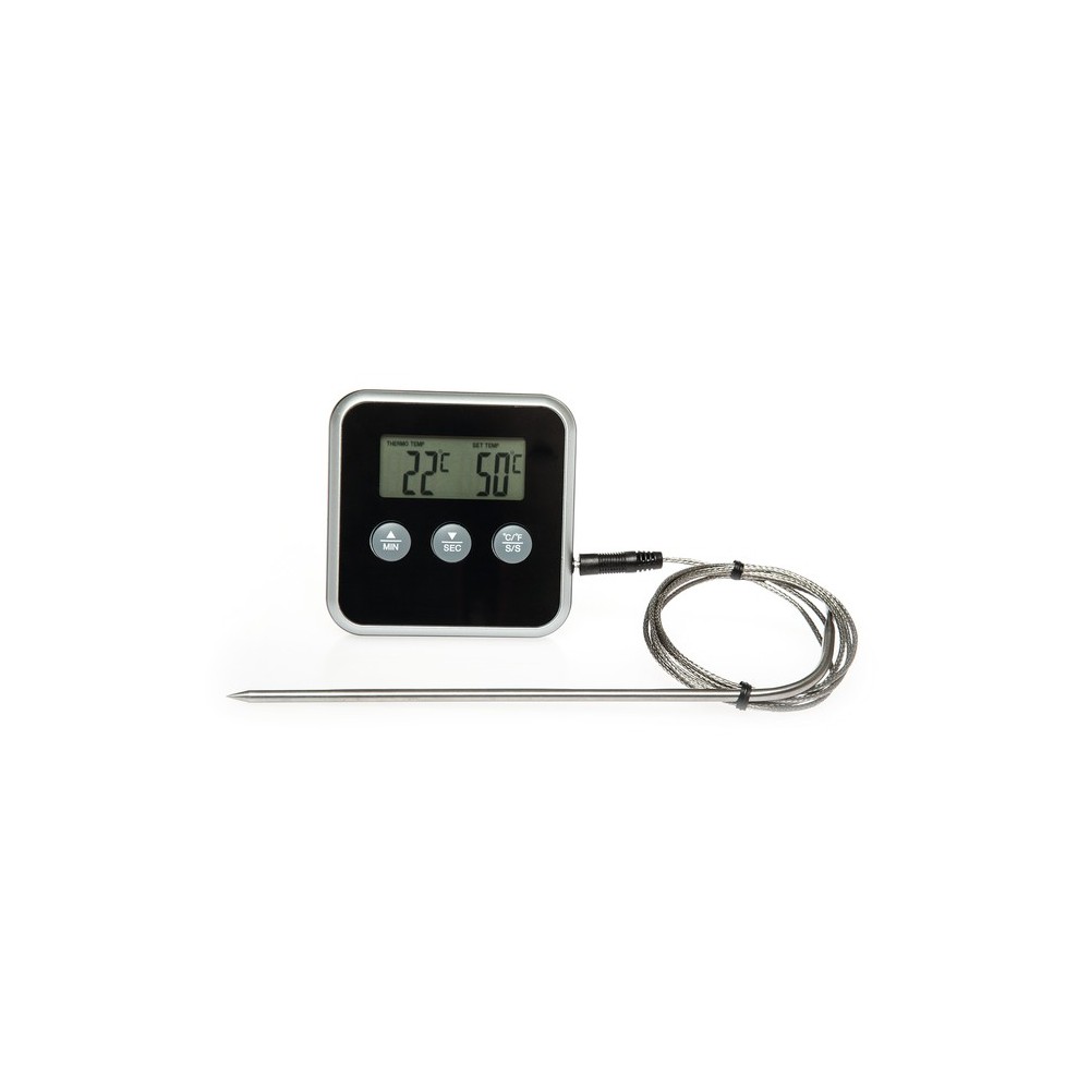 - Profesionaliam mėsos kepimui naudokite šį modernų skaitmeninį termometrą su mėsos zondu ir laikmačiu – tiksliems ir nuosekliems rezultatams.