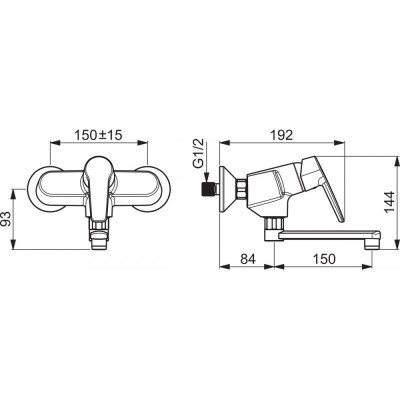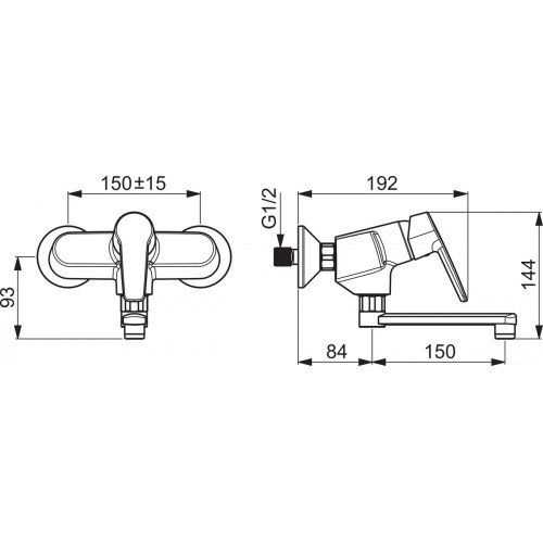 - Sieninis praustuvo maišytuvas komplektuojamas su sukiojamu 150 mm snapu, ekscentrinėmis jungtimis ir dangteliais.