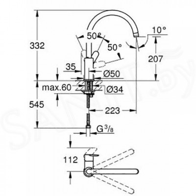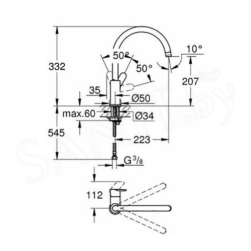 - sukimosi sritis 360 °