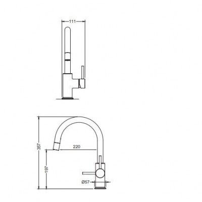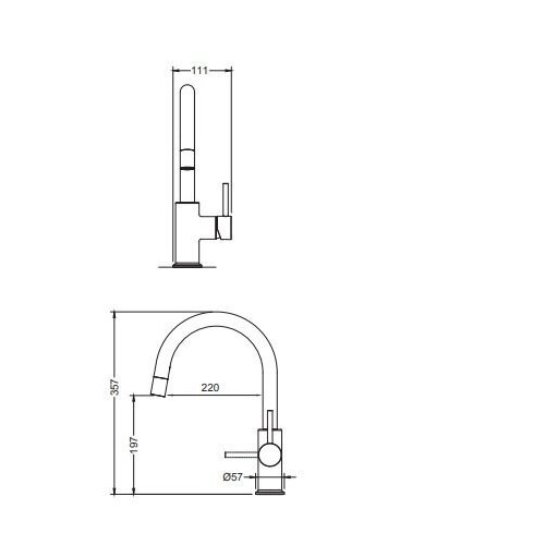 - maišytuvo rankena priekyje, todėl maišytuvą galite sumontuoti tarp kriauklės ir sienos