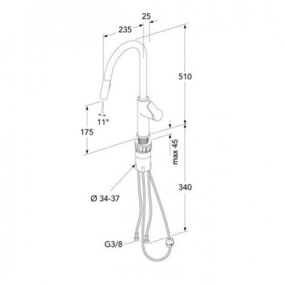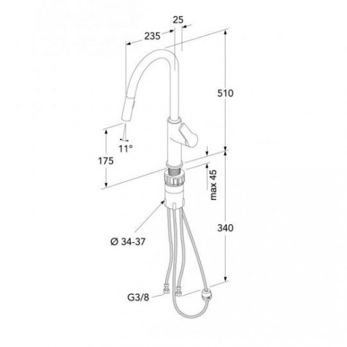 - Patvirtinto tipo lengviau prijungiama lanksti 3/8 colio vandens jungtis