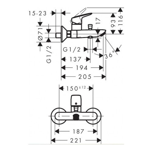 - atstumas nuo centro: 150 ± 12 mm