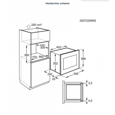 - Įmontavimo matmenys 560 x 380 x 350 mm