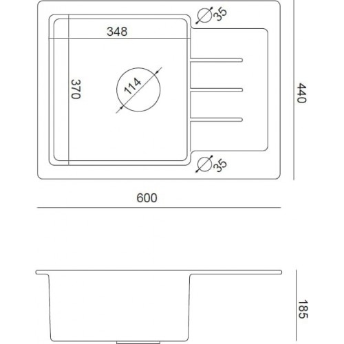 - Kriauklės gylis (mm) 185