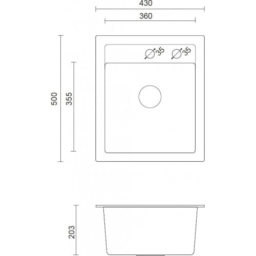 - Kriauklės gylis (mm) 203