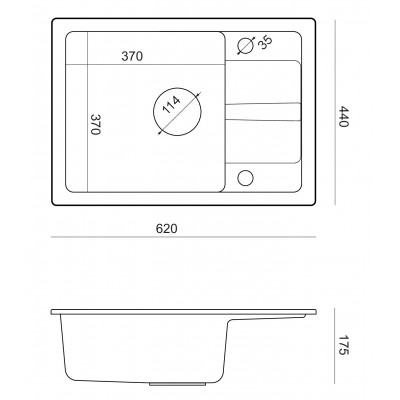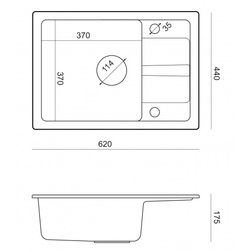 - Kriauklės gylis (mm) 176