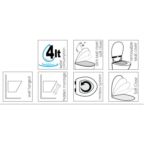 - Plonas stilingas minimalistinis dangtis, kuris pabrėžia klozeto formą ir palengina priežiūra dangčio, nebėra bortelių, lygus paviršius lengviau valyti.