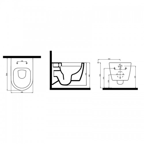 - Atstumas tarp klozeto tvirtinimo varžtų 180mm arba 230mm.