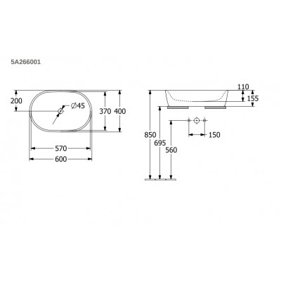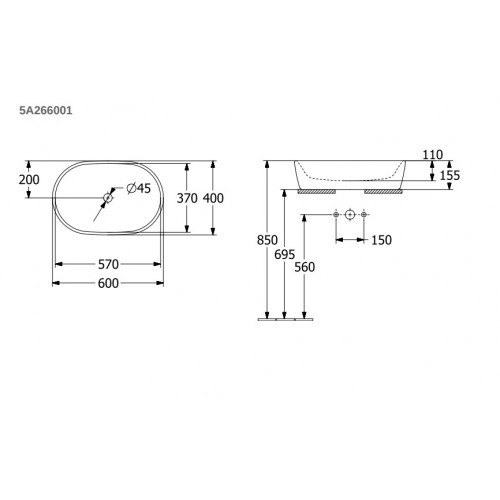 Praustuvas Villeroy ampBoch Architectura 60x40cm, 5A266001