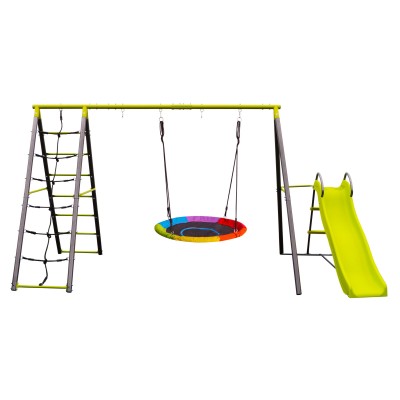 G21 sūpynių komplektas suteikia vaikams puikią galimybę žaisti ir užsiimti veikla lauke. Be komplekto su rėmu, kopėčiomis, laipiojimo tinklu, sūpynių žiedu ir čiuožykla, taip pat galite įsigyti sūpynes su atlošu ir apsauginiu turėklu mažyliams arba sūpynių sėdynes 3–10 metų vaikams.