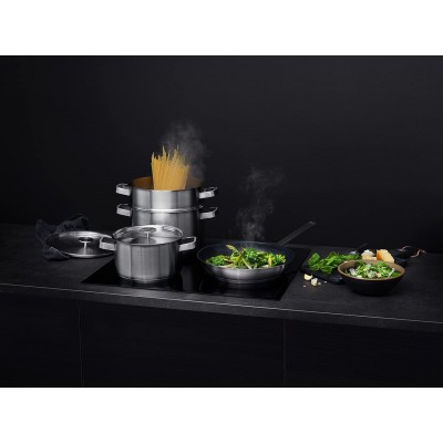 - Lengva valyti – nereikia šveisti. AEG keptuvės danga užtikrina, kad maistas nepridegtų. Maisto ruošimui nereikės aliejaus ar sviesto pertekliaus. Tai leidžia paviršių valyti efektyviau.