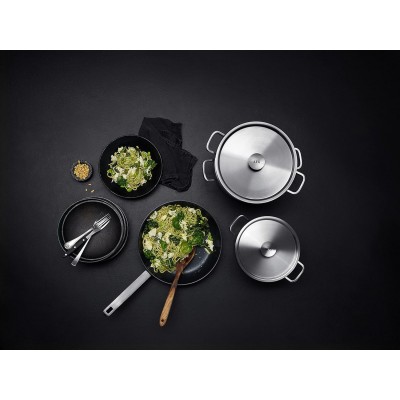 - Įtraukti komponentai Keptuvė, Įdėklas makaronams, Du puodai