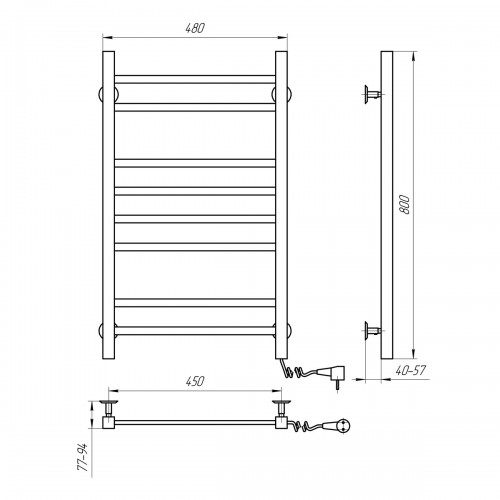 El.rankšluosčių džiovintuvas Navin Avangard 480*800 dešinė juodas 12-228050-4880
