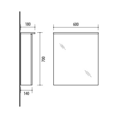 - Veidrodinės spintelės matmenys: 600 x 700 x 180 mm (plotis, aukštis, gylis)