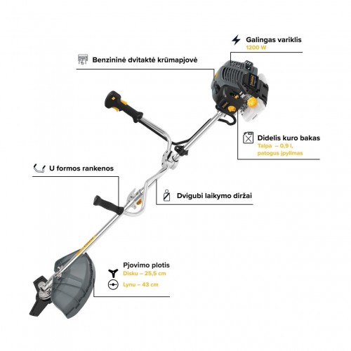 - Rekomenduojamas pjovimo lyno skersmuo 2.4 mm
