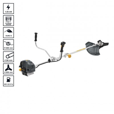 - Benzininė dvitaktė krūmapjovė Grunder TT-B520 su galingu varikliu (1350 W) – idealus pasirinkimas tiems, kas nori patogiai ir efektyviai pjauti krūmus sode, tvarkyti krūmų sąžalynus sodyboje, poilsiavietėje, pjauti pakraščiuose augančią žolę.