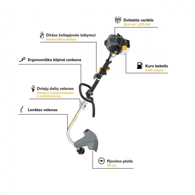 - Rekomenduojamas pjovimo lyno skersmuo 2.4 mm