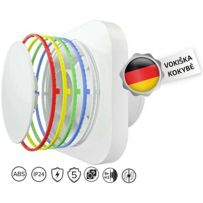 - Kartu su ventiliatoriumi komplektacijoje yra keturi dekoratyviniai žiedai (baltas, raudonas, geltonas, žalias, mėlynas).