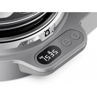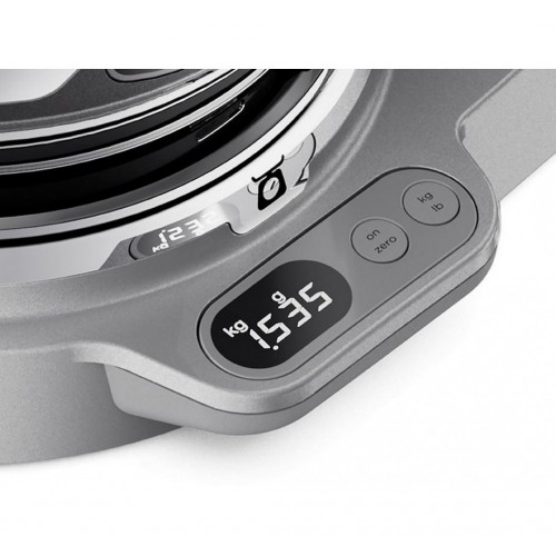Produktus bei jų mišinius (net iki 6 kg) sverkite tiesiai prietaiso dubenyje dėka itin tikslių jame įmontuotų svarstyklių – taip sutaupysite laiko ir sumažinsite netvarką ruošdami maistą. Svarstykles reguliuoti galėsite virtuvinio kombaino apatinėje dalyje įmontuotais mygtukais, o ekranėlyje matysite rezultatus. Svarstyklės veikia tiek atkėlus maišytuvo viršutinę dalį, tiek ją nuleidus.