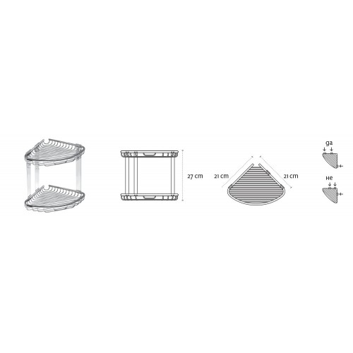 - Kampinėje vonios kambario lentynoje yra dvi lentynos, skirtos kempinei, muilams ir kitiems dušo reikmenims laikyti.