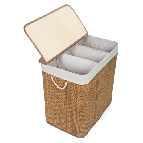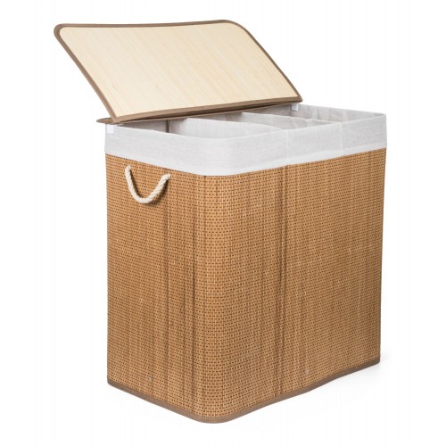 Bambuko krepšelis G21 su fiksuotu dangteliu turi plaunamą audinio įdėklą , padalintą į tris atskirus skyrius . Taigi prieš skalbdami galite rūšiuoti nešvarius skalbinius ir sudėti juos atskirai pagal medžiagą ar spalvą .