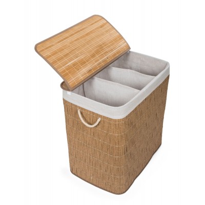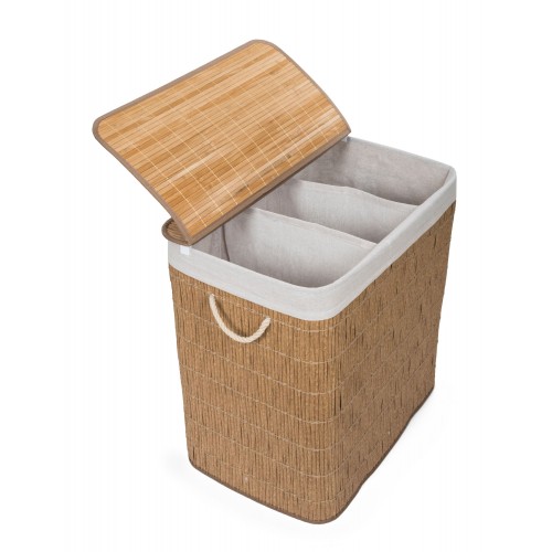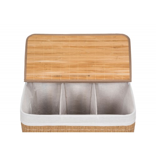 Skalbinių krepšelis G21 iš PE rotango su fiksuotu dangteliu turi plaunamą audinio įdėklą , padalintą į tris atskirus skyrius . Taigi prieš skalbdami galite rūšiuoti nešvarius skalbinius ir sudėti juos atskirai pagal medžiagą ar spalvą .